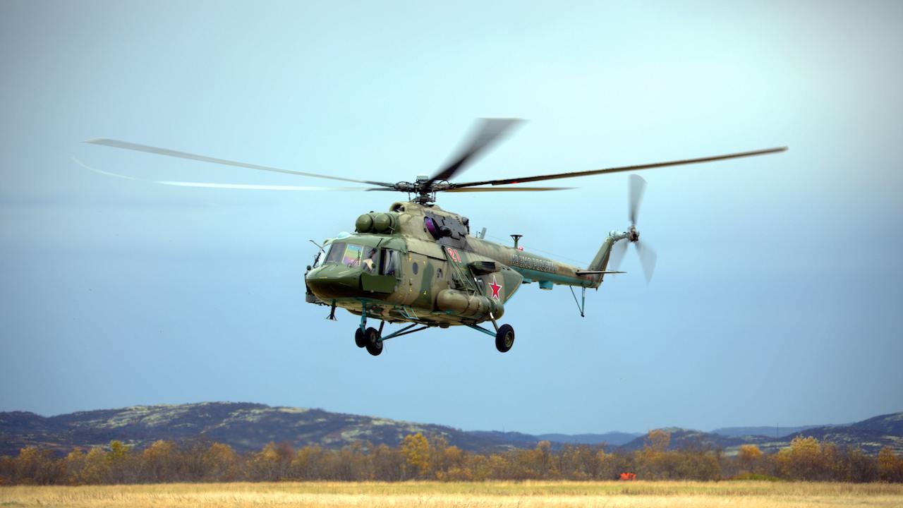 Военнослужащие спасательных парашютно-десантных групп смешанного авиационного корпуса Северного флота и отдельной гвардейской бригады морской пехоты выполнили прыжки с парашютом с борта вертолета Ми-8.