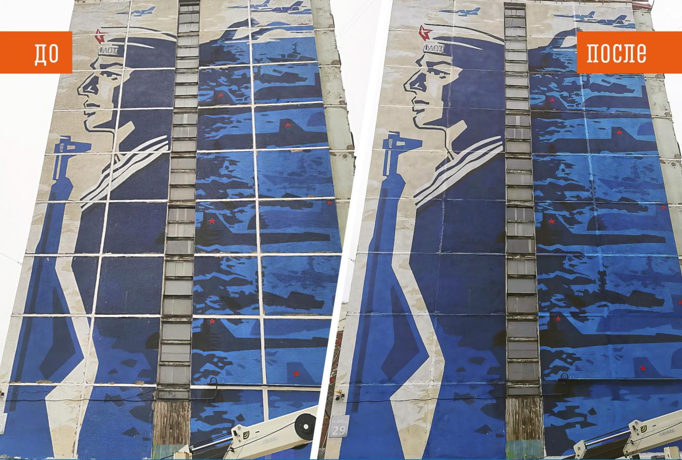 Два мурала восстановили на проспекте Героев-североморцев в Мурманске