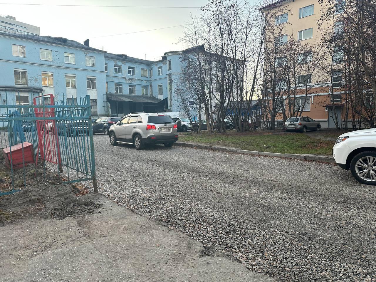 В Мурманске на Ленинградской асфальтируют двор