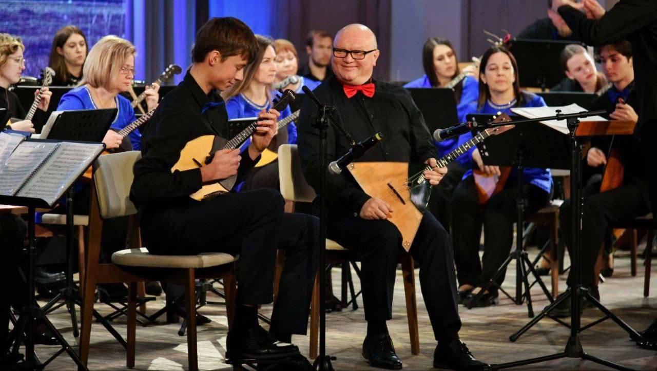 В программе юбилейного вечера выступили известные выпускники школы, среди которых заслуженный артист РФ и "первая балалайка России" Андрей Горбачев