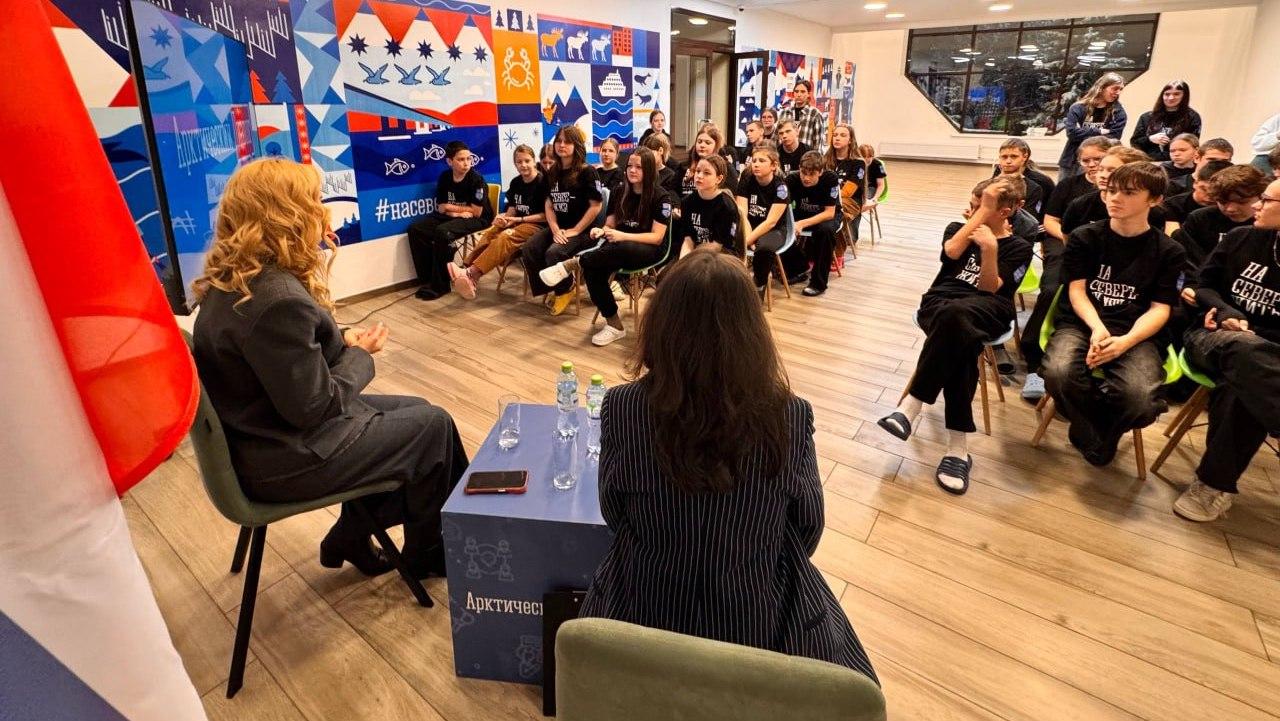 В День добровольца руководитель Единого волонтерского центра Мурманской области Евгения Чибис приняла участие в проекте "Арктический диалог". Встреча со школьниками из Ловозерского округа, Ковдора, ЗАТО Североморск, Полярных Зорь и Кандалакши, участниками тематической смены "Волонтеры Заполярья", прошла в Центре гражданско-патриотического воспитания "На Севере – жить!".