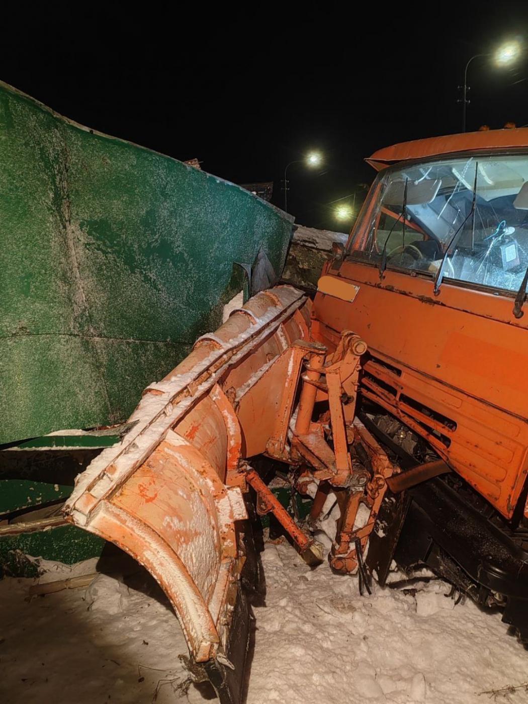Около 6 утра 28 декабря в районе Кольского моста, у гаражного кооператива №363, в Мурманске произошла авария. КамАЗ съехал с дороги и врезался в гаражи, сообщили в Управлении по ГОЧС и ПБ Мурманской области.
